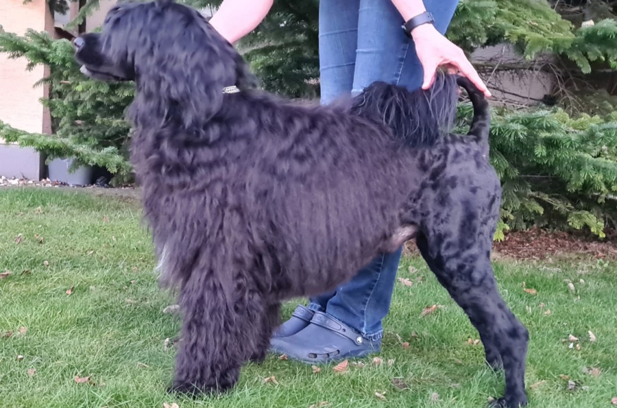 Louie ist ein wunderbarer Rüde im Idealmaß, wie sein Vater. Die Richterin war außerordentlich begeistert über ihn, seinen Charakter und seine Herkunft. Louie ist offen, freundlich, aufgeschlossen und super lieb und vorsichtig im Umgang mit Kindern. Durch die vielen tollen Dinge, die seine Besitzer mit ihm machen, ist er nicht nur ausdauernd, sondern auch mega muskulös! Sein Haarkleid ist schwarz, wavy. Wenn es die Temperaturen zulassen, ist der King (so wird er liebevoll genannt) im Wasser zu finden. Seinen ersten Wasserworkshop schloss er ebenfalls erfolgreich ab.